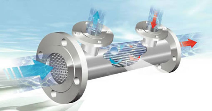 熱交換器 シェル&チューブ式交換器の性能を高めるため、長年の技術が生かされたスパイラルチューブを使用。 伝熱管の外側、内側を通る液体に乱流運動を発生させ、伝熱能力は平滑管の約2.0倍~3.5倍。 汚れ付着は平滑管の約1/2という画期的なシェル&チューブ式熱交換器です。 チューブと管板はTIG溶接し、蒸気はもちろん排ガス・水対水等にも使用して頂けます。