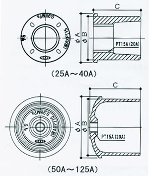 | 材質 | 口径(A) | ΦA(mm) | ΦB(mm) | C(mm) | ||